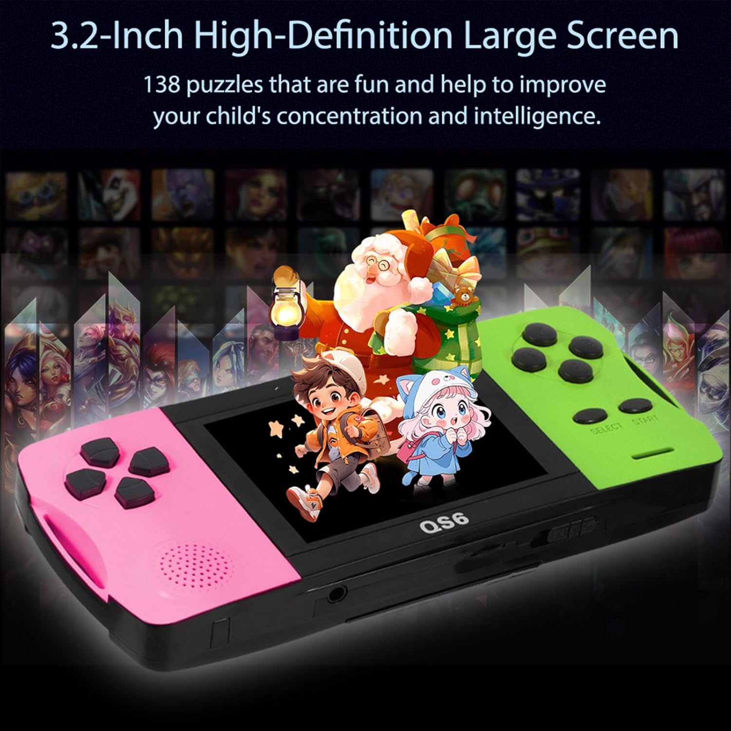 3.2″ Large Screen Rechargeable Portable Handheld Games for Kids Ages 4-10, Preloaded 138 Classic Mini Games ,Arcade Electronic Toy Support TV Output Birthday Xmas Present for Boys Girls(Rose+Green)