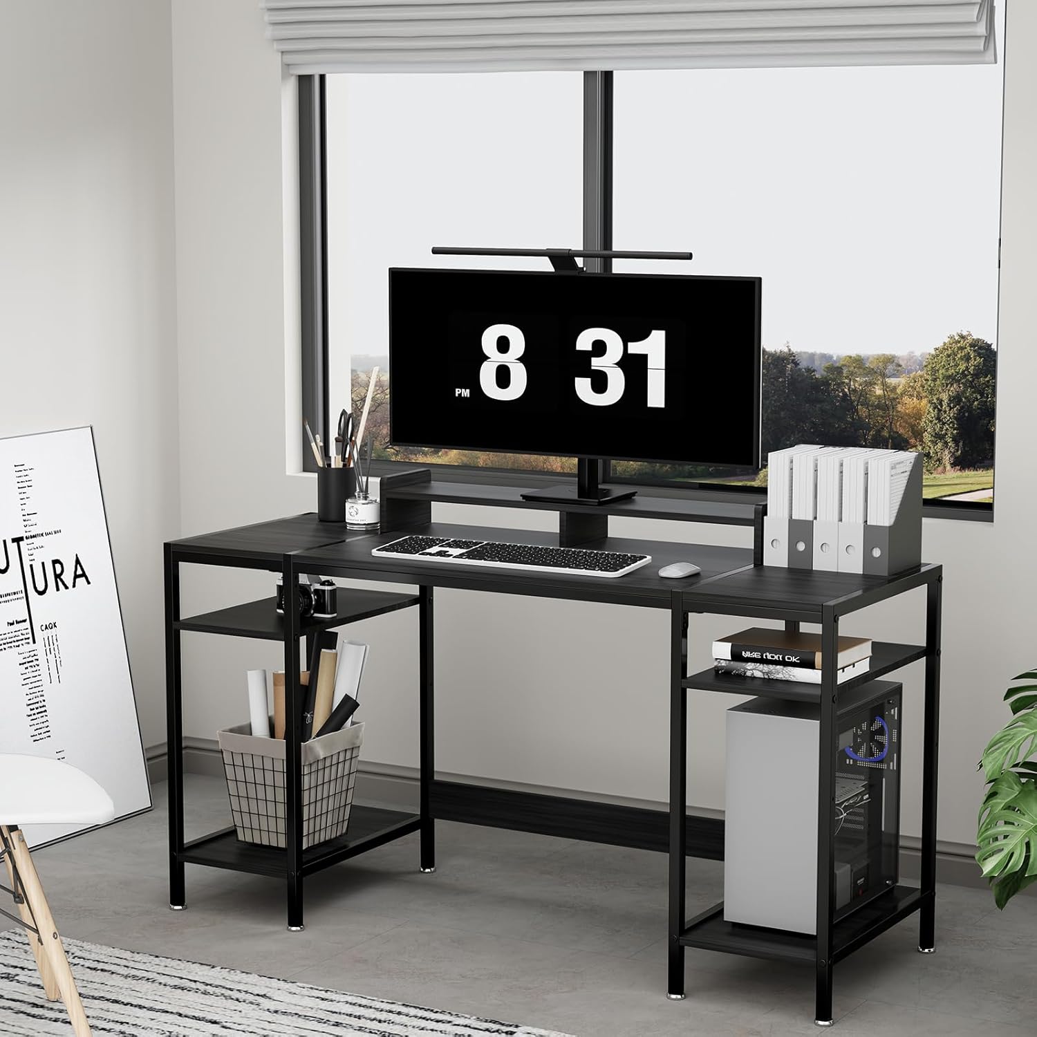 Gaming Desk/Computer Desk,Home Office Desk with Monitor Stand, Writing Desk for 2 Monitors,desk Adjustable Storage Space, Firm and practical small desk,Modern Design Corner desk (Black, 55″)