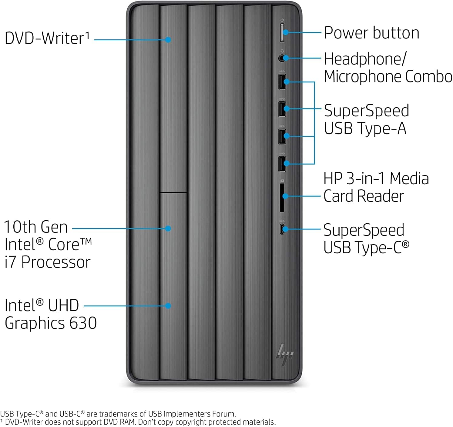 HP 2022 Envy TE01 Gaming Desktop – 10th Intel i7-10700F 8-Core CPU – 4GB Nvidia GTX 1650-32GB DDR4-1TB NVMe SSD + 2TB HDD – WiFi Bluetooth RJ45 – Windows 11 Pro w/ 32GB USB