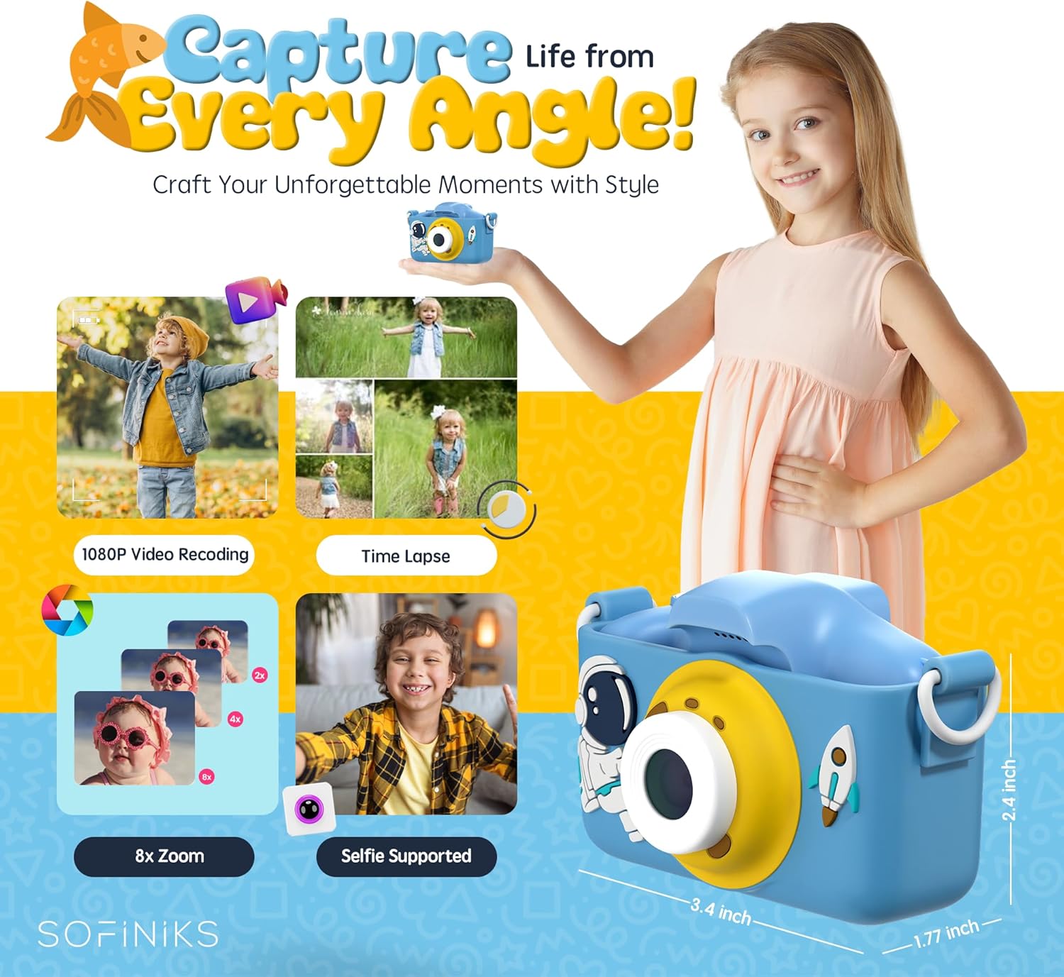 I bought this camera for my 4-year-old niece, and she’s absolutely thrilled! It’s lightweight, durable, and easy for her to hold and use. The simple buttons and fun filters keep her entertained, and the battery lasts a long time. It’s a great way to encourage creativity and let your children explore the world through their own lens. I Highly recommend this for young children!