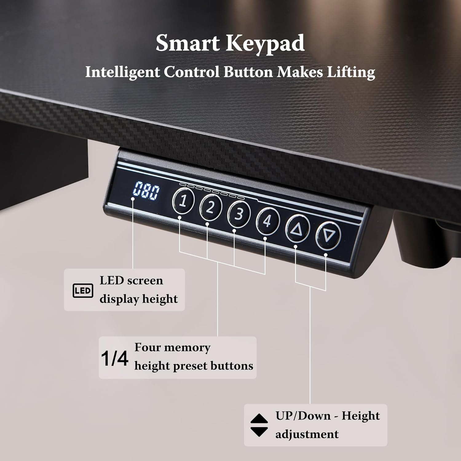 Height Adjustable: The electric standing desk feature allows users to easily adjust the height to their desired level with just a simple operation.Whether you want to sit or stand while working or gaming,this desk can meet your needs perfectly, helping to improve posture and reduce the risk of back and neck pain caused by long hours of sitting.